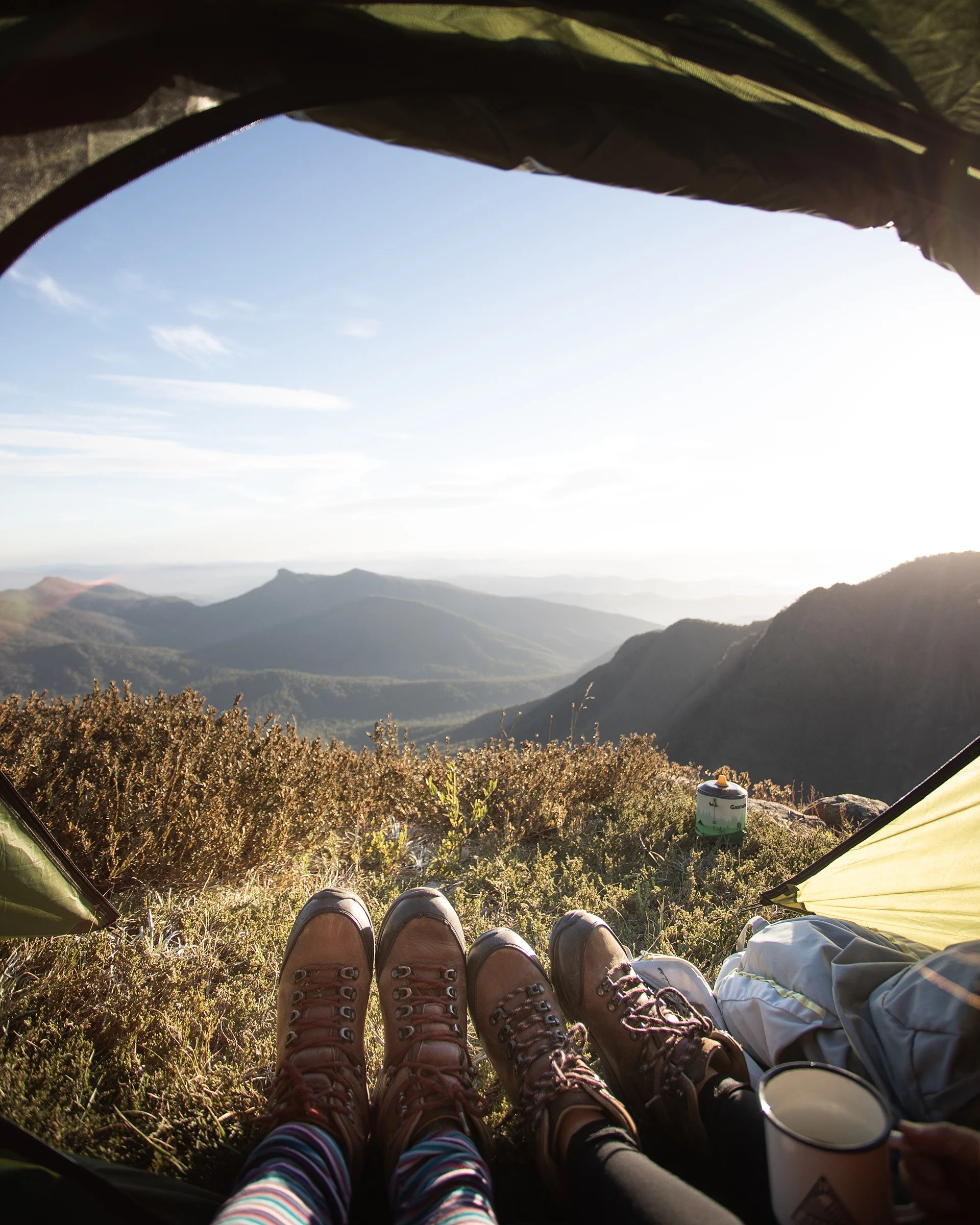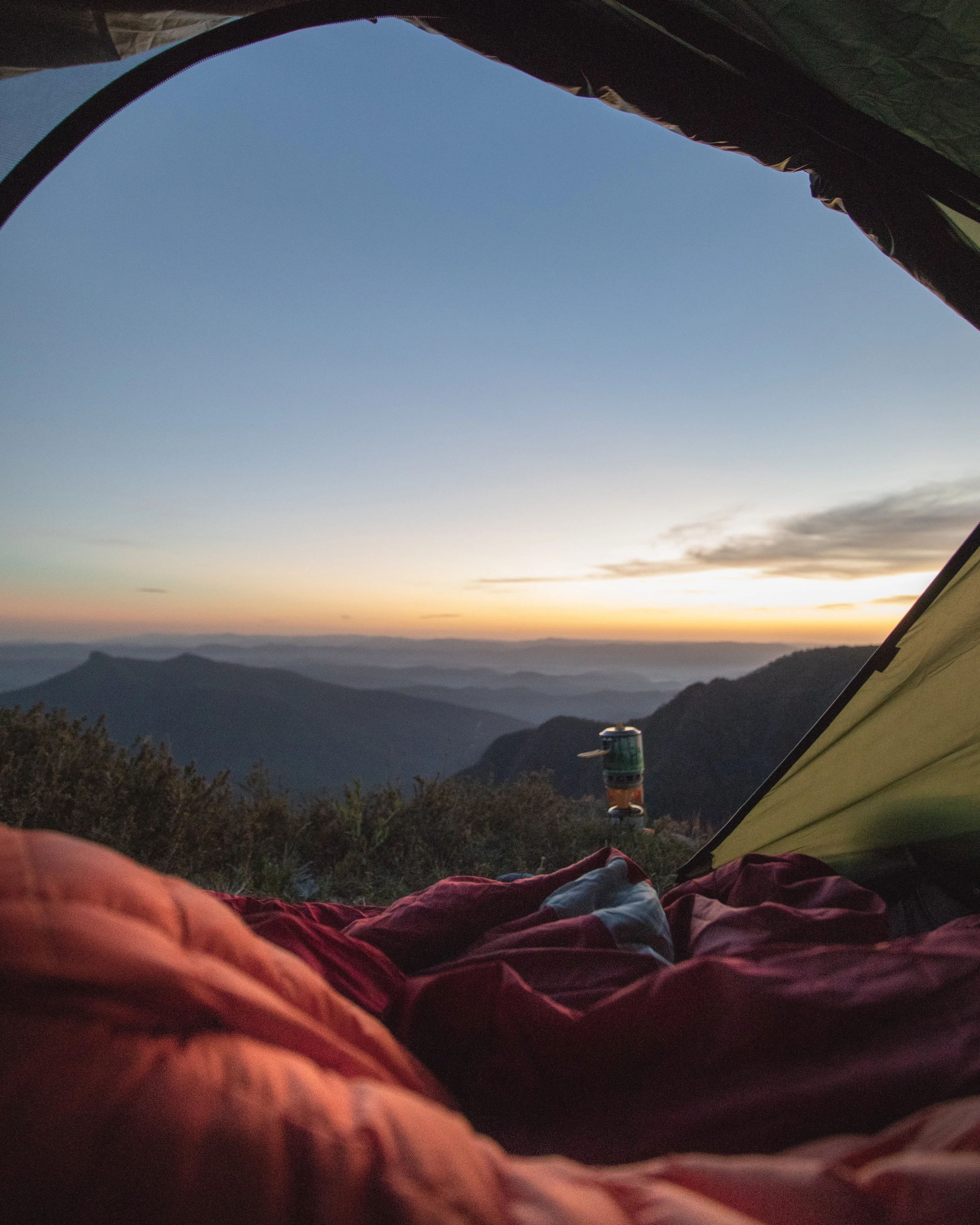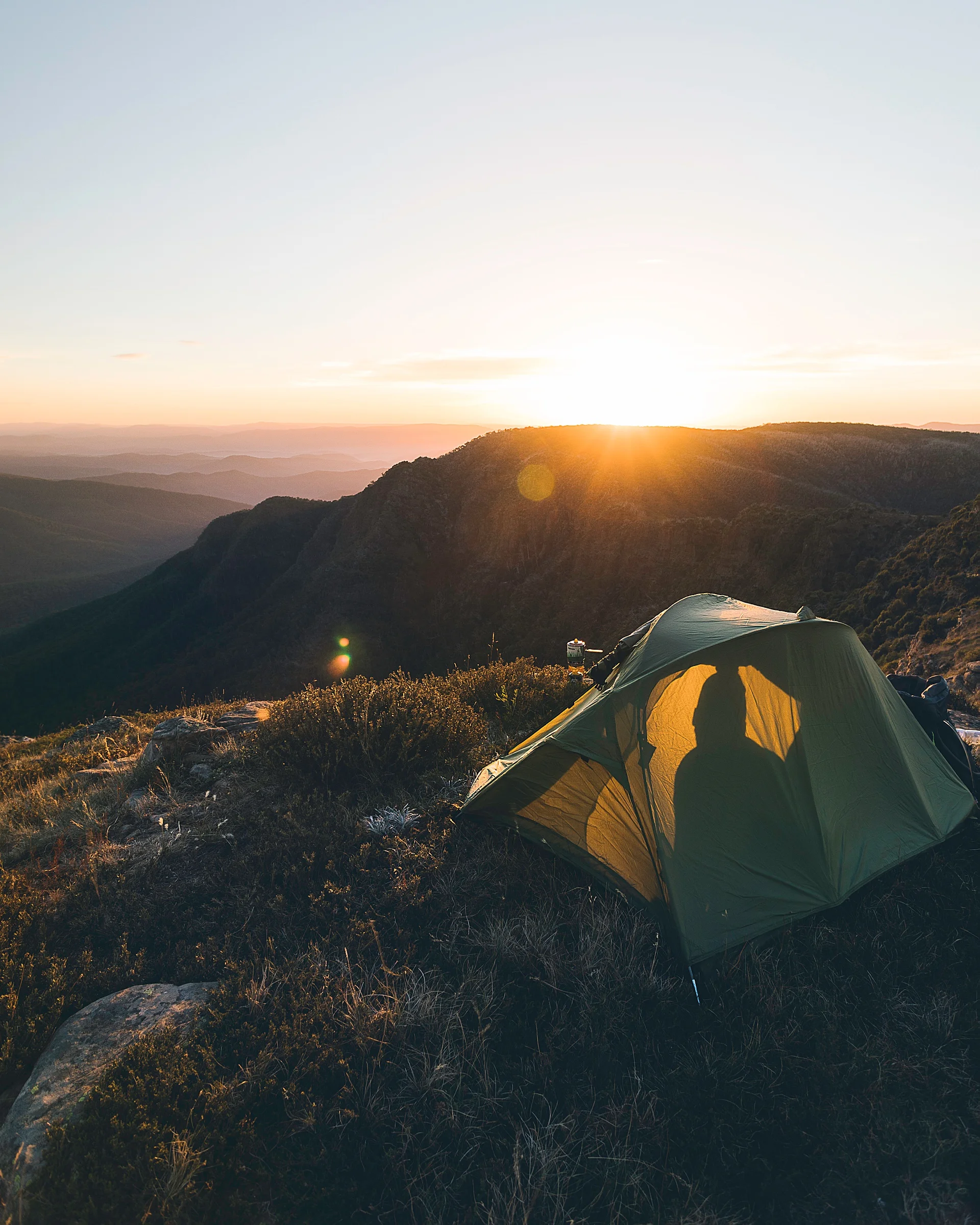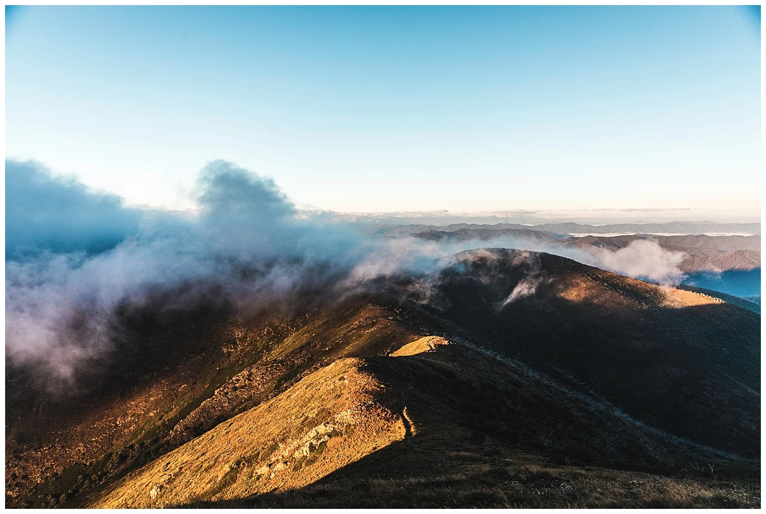 Once you have opened into the clearing and reach the top you are greeted with some of the most spectacular views I have experienced in the victorian high country that’s for sure! We choose a lovely little flat section right on the ridge line of the Crosscut Saw and set up our camp. Calculating where the sun would rise we set up our tent so that when we opened our door we would be treated with the morning rays. Thats my top tip for the most glorious wake up call of all time!